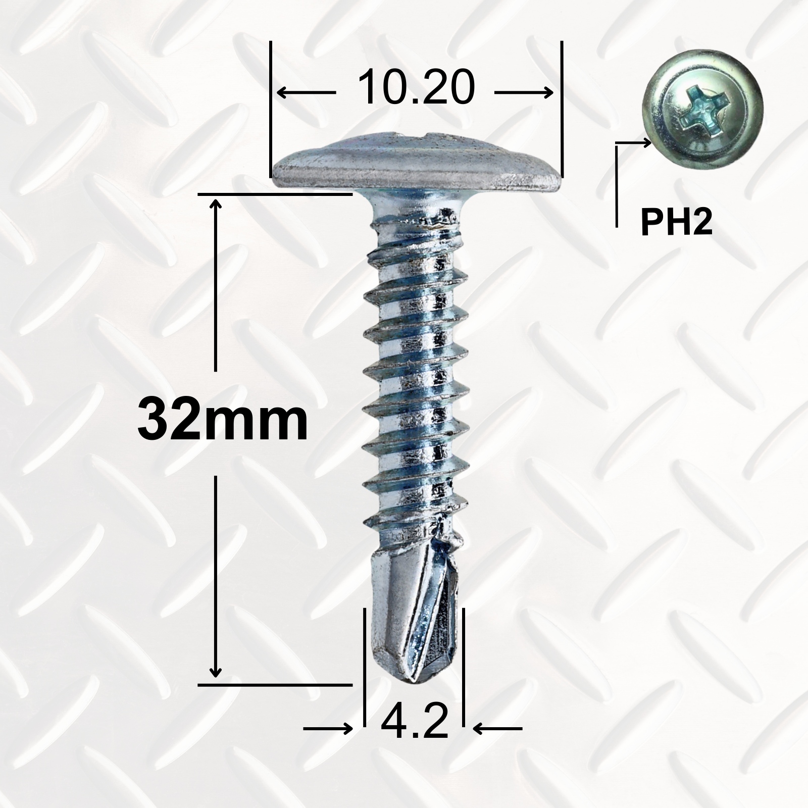 Șurub autoforant 4.2x32 mm, cap plat, amprentă Phillips PH2, realizat din oțel carbon electrogalvanizat. Ideal pentru fixarea tablei cutate, țiglei metalice, panourilor de gard și policarbonat. Ambalare: 1000 bucăți.