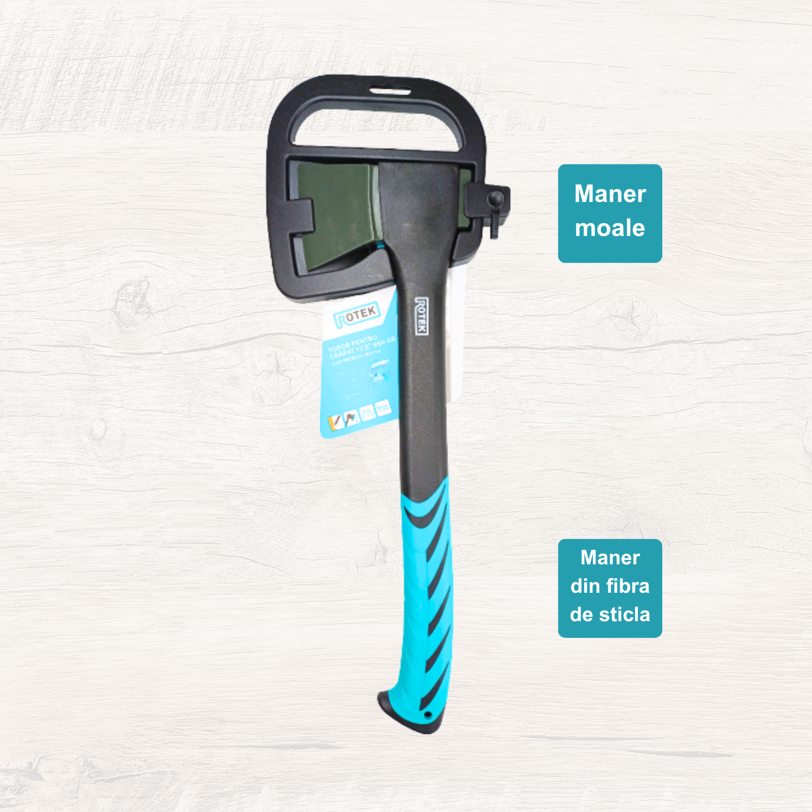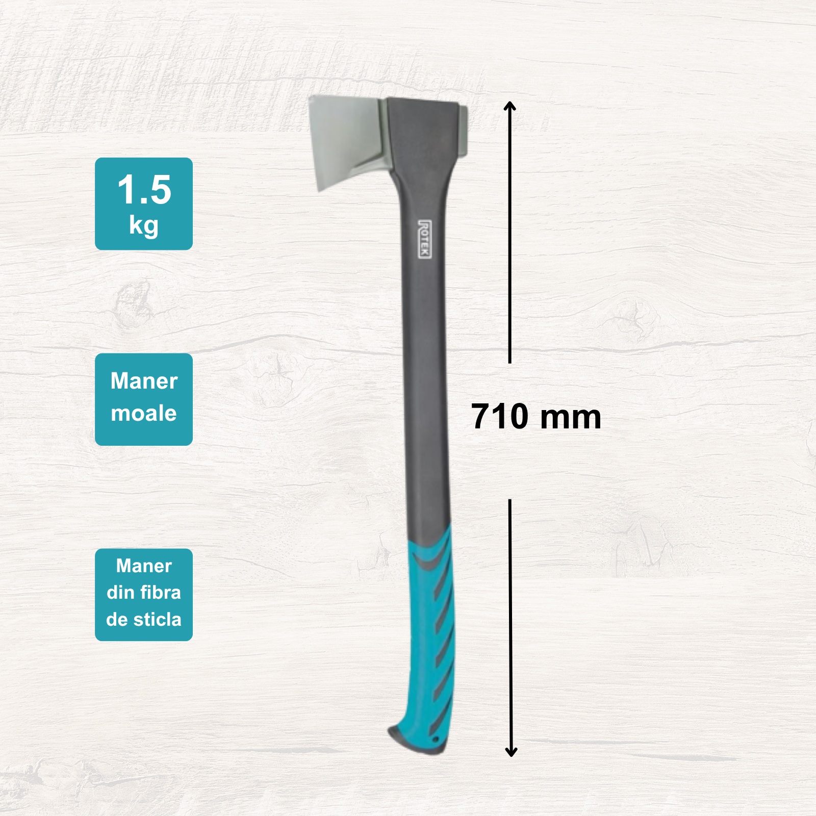 Topor profesional Rotek 71cm pentru despicarea lemnului. Oțel carbon forjat, lamă PTFE anti-aderentă, mâner ergonomic din fibră de sticlă. Greutate optimă 1.5kg pentru eficiență maximă.